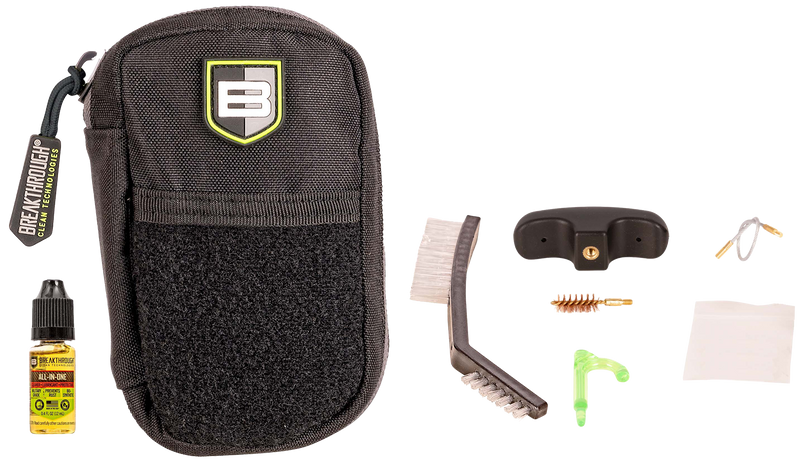 The Breakthrough Clean Badge Pull Thru Kit is an 8-piece cleaning system designed for .44 and .45 caliber firearms. Features a nylon case for portable storage and protection. This pull-through style kit provides essential cleaning components in a compact form factor.