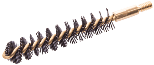 This 12 gauge bore brush features a brass core with nylon bristles designed for effective firearm cleaning and maintenance. The brush measures 7.8 inches in length with a 2.7 inch width, making it suitable for standard shotgun barrel cleaning. Nylon bristles provide reliable cleaning action without damaging bore surfaces.
