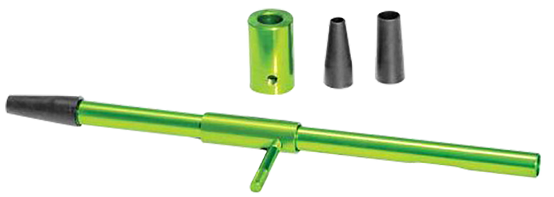 Universal bore guide designed to protect rifling and guide cleaning rods through firearm barrels during maintenance. Fits bore sizes from .17 caliber up to .416 caliber, with an aluminum construction measuring 12.50" in length. Suitable for cleaning rod use across a wide range of rifle calibers.