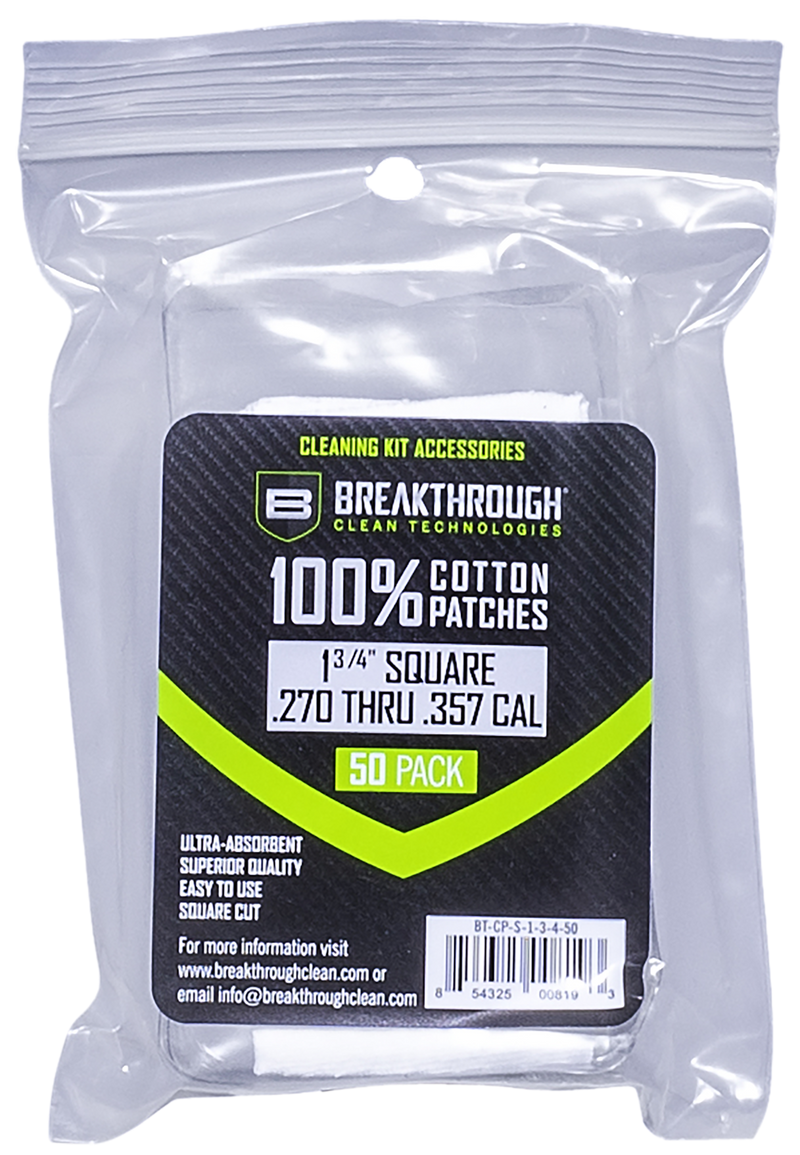 Breakthrough Clean Square Cotton Patches 1.75" 270/357 Cal 50 Pack - BTCPS13450