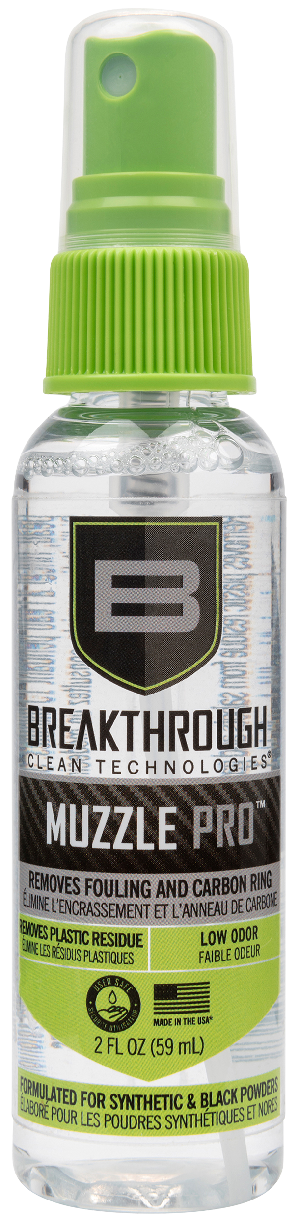 Heavy-duty carbon remover solvent in a 2 oz pump spray bottle designed for firearm cleaning and maintenance. This eco-friendly formula is effective for removing heavy carbon buildup from firearms and firearm components. Product is hazmat-rated for both ground and air transport.