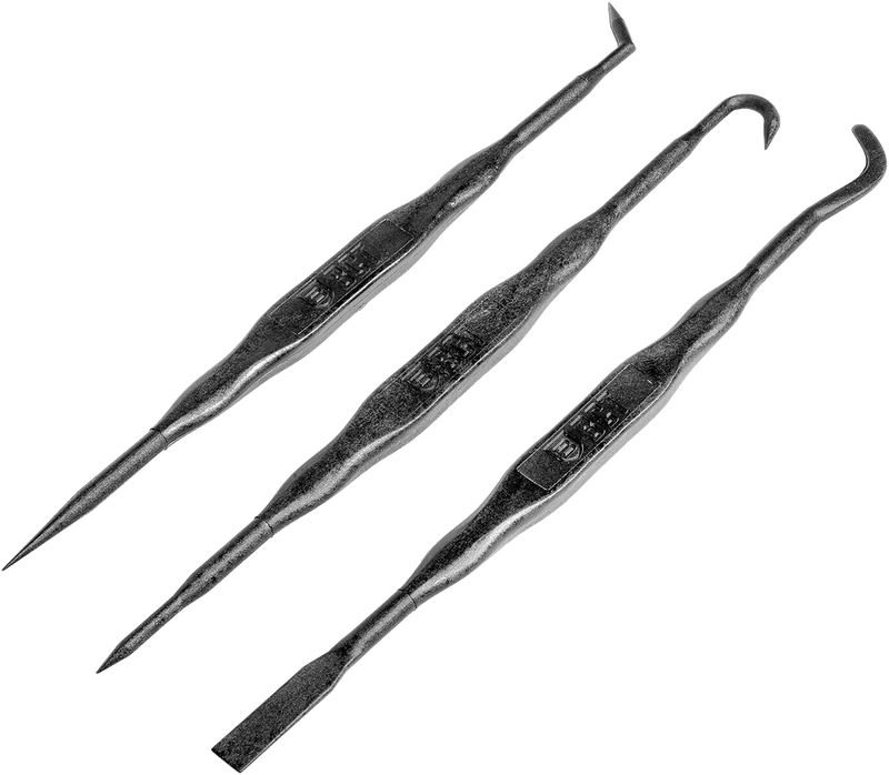 Double-ended fiber reinforced polymer cleaning picks designed to safely remove carbon buildup from grooved areas and hard-to-reach firearm surfaces without damaging finishes. More break-resistant than metallic picks, these universal tools feature fine tips on both ends for precision cleaning. Includes 3 picks and a storage pouch.