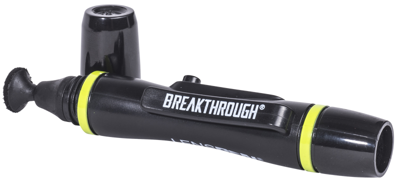 The Breakthrough Clean Lens Pen is a compact cleaning tool designed for optics eyepieces and helmet shields. It features a retractable dust removal brush and a special non-liquid cleaning element that is designed to never dry out.