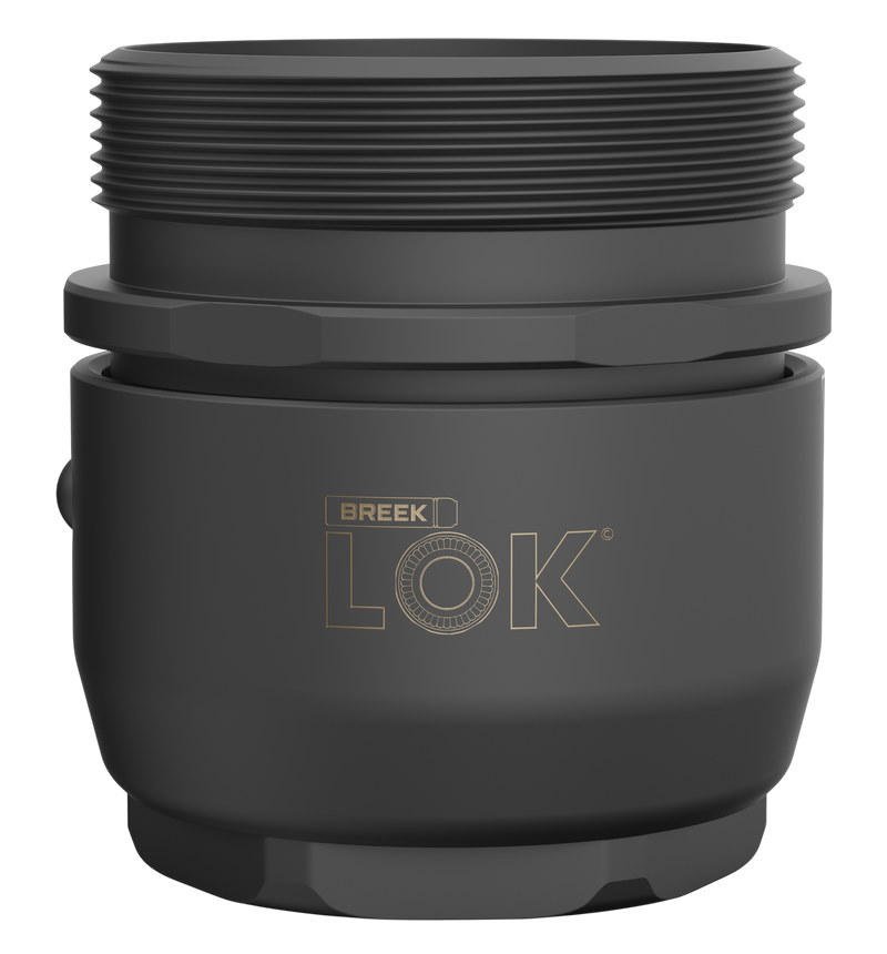 The Breek LOK 3QD is a quick-detach muzzle device compatible with 1.375"x24 TPI threaded barrels. Constructed from titanium with a DLC (Diamond-Like Carbon) black finish, it features a 8.0" length and 1.5" height for reliable suppressor or accessory mounting. The LOK system provides secure, repeatable attachment for suppressors and other muzzle accessories.