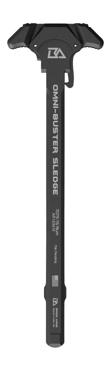 The Breek Arms Sledgehammer Omni Buster is an ambidextrous charging handle designed for AR-15 platforms. This charging handle features a buster latch design for enhanced manipulation and reliability. Installation is standard for mil-spec AR-15 upper receivers.