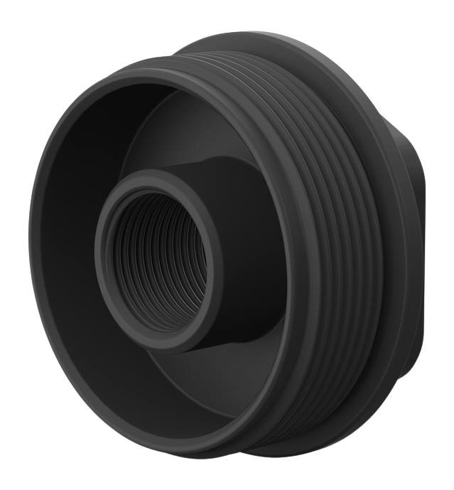 This is a low-profile universal hub muzzle device from Breek Arms with a titanium finish. It features a 1/2x28 thread pitch for universal AR-platform compatibility. The low-profile design minimizes sight obstruction while providing a compact mounting solution for suppressors or other muzzle accessories.