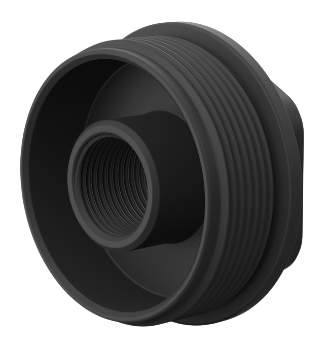 Breek Arms low-profile muzzle device with universal hub mounting system compatible with 5/8x24 threaded barrels. Constructed from stainless steel for corrosion resistance and durability. Designed as a compact, low-profile solution for rifle applications requiring a direct-attach muzzle mounting interface.