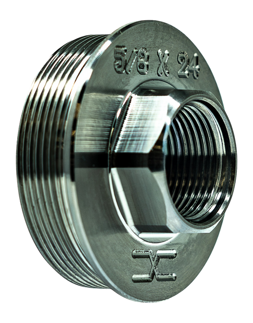 This Breek Arms low-profile muzzle brake features a direct-thread design with universal hub compatibility and a 5/8x24 thread pitch. Constructed from titanium for enhanced durability and reduced weight, it is designed to reduce recoil and muzzle rise during firing.