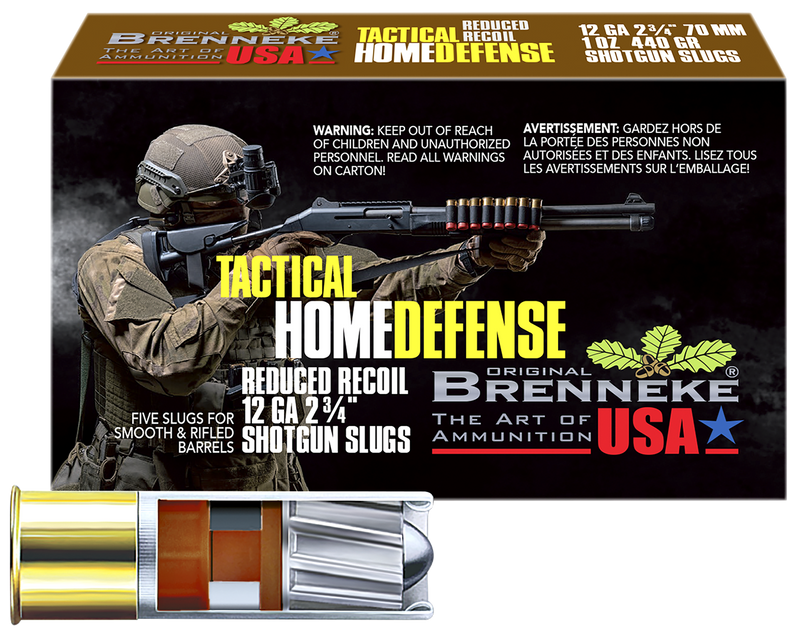 Brenneke SL122THD THD Home Defense shotshells in 12 Gauge 2.75" with 1oz lead slug rounds designed for home defense applications. These rounds deliver 1378 fps muzzle velocity and come 5 rounds per box. Lead casing with hazmat shipping required.
