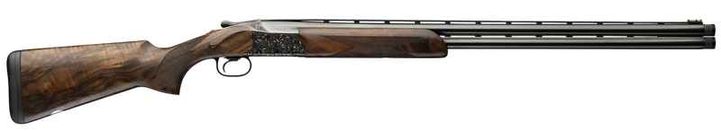 The Browning Citori 825 Belmont Sporting High Grade is a break-action over/under shotgun chambered in 12 Gauge with a 3" chamber and 30" ventilated rib barrels. Built for sporting clays, skeet, and upland bird hunting, it features Grade IV Turkish walnut stock with fine line checkering, gloss blued barrels, and classic gold-enhanced engraving. The shotgun includes a Triple Trigger System, HiViz Pro Comp front sight with ivory mid bead, and Invector-DS Extended chokes (Full/Improved Cylinder/Improved Mod/Modified/Skeet) for versatile shooting options. Overall length is 48" with a weight of 7.12 lbs.