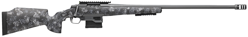 The Browning X-Bolt 2 Pro LR is a bolt-action rifle chambered in 300 Win Mag with a 26" fluted threaded barrel and 1-in-8" twist rate. It features a McMillan Game Warden 2.0 stock in digital camouflage, adjustable trigger, 20MOA optic rail, and Recoil Hawg muzzle brake. Weighing 7 lbs 6 oz with an overall length of 46.75", this rifle is drilled and tapped with a 5/8x24 thread pattern and includes a 5+1 round capacity.