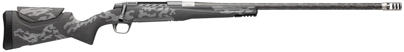 Browning X-Bolt 2 Mountain Pro bolt-action rifle in 6.8 Western with a 24" threaded carbon fiber barrel and 1:7.5" twist rate. Features an adjustable DLX trigger, Recoil Hawg muzzle brake, adjustable comb stock with digital camouflage accent graphics, and weighs 6.3 lbs. Drilled and tapped receiver with 5/8x24 thread pattern; no sights included.