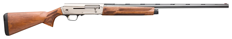 16 gauge semi-automatic shotgun with 2.75" chamber and 28" ventilated rib barrel. Features a brushed nickel aluminum alloy receiver, Grade I Turkish walnut stock, fiber optic front sight with ivory mid bead, and Invector-DS interchangeable choke tubes (Full, Modified, Improved Cylinder). Weighs 5.13 lbs with an overall length of 47.25" and includes an ABS case.