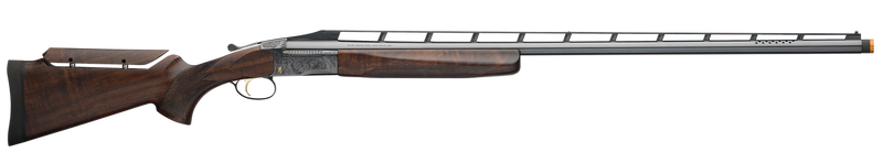 The Browning BT-99 Plus is a 12 Gauge break-action single-shot shotgun with a 34" ported vent rib barrel chambered in 2.75". It features a polished blued receiver with engraving, gloss oil black walnut adjustable comb stock, and an Invector-Plus Midas choke system with Improved Modified included. Weighing 8.7 lbs with an overall length of 51", this trap-style shotgun includes ivory front bead and mid-bead rear sights, ejector, and a high-post ventilated rib.