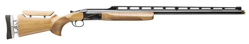 The Browning BT-99 Max is a competition-ready single-shot trap shotgun chambered in 12 Gauge with a 2.75" chamber and 32" polished blued adjustable vent rib barrel. Features include an adjustable high-post rib, adjustable comb, adjustable length of pull, GraCoil recoil reduction system, and gloss AAAA Grade maple stock with vertical grip. Includes Midas Grade choke tubes (Full, Improved Modified, Modified) and Pachmayr Decelerator XLT recoil pad; weighs 9.4 lbs.