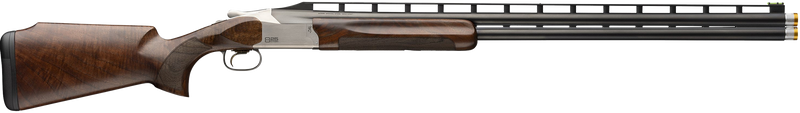 The Browning Citori 825 Trap is a 12 Gauge over/under break-action shotgun with a 32" ventilated rib barrel and 2-round capacity. Features a silver nitride engraved steel receiver with polished blued barrel, Grade III/IV Monte Carlo gloss walnut stock with semi-beavertail forearm, Fire Lite 2 mechanical trigger, and Invector-DS extended choke system with Hi-Viz Pro-Comp fiber optic front sight and ivory mid-bead. Weighs 8.1 lbs with an overall length of 50".
