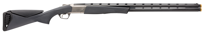 The Browning Cynergy CX is a 12 gauge over/under shotgun with a 28" ventilated rib barrel and 2-round capacity, featuring a 3" chamber and break-open action. It includes a silver nitride receiver, charcoal gray composite adjustable comb stock, and comes with three Invector-Plus flush chokes (Full, Modified, Improved Cylinder). Weighing 7.12 lbs with an overall length of 46", it delivers a 60/40 point of impact suited for trap, sporting clays, and field use.