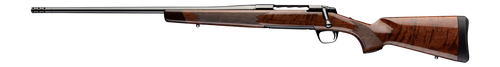 The Browning X-Bolt 2 Medallion is a bolt-action centerfire rifle chambered in 243 Win with a 22" sporter-weight threaded barrel and 4+1 capacity. It features a gloss-finished AAAA maple wood stock with rosewood accents, polished blued engraved receiver, adjustable deluxe trigger, and radial muzzle brake. Drilled and tapped for scope mounting, this rifle weighs 6 lbs 10 oz with an overall length of 42" and 1:10" twist rate.