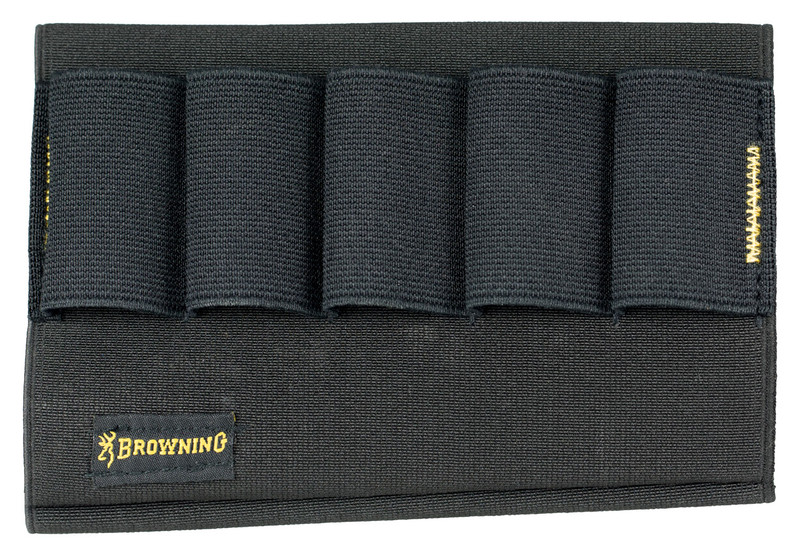 The Browning Stock Option is a nylon buttstock-mounted ammunition holder designed to carry 5 rounds of shotgun ammunition. This accessory mounts directly to the buttstock of compatible shotguns and measures 9.6" in length with a plain black finish for durability and low visibility.