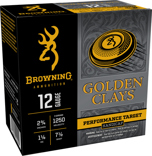 Browning Golden Clays shotshells are loaded in 28 Gauge with a 2.75" case and 3/4 ounce of #7.5 shot, delivering 1300 fps muzzle velocity. Designed for clay target shooting and competitive sport use, these lead shot rounds offer consistent performance for shooting sports enthusiasts. Each box contains 25 rounds.