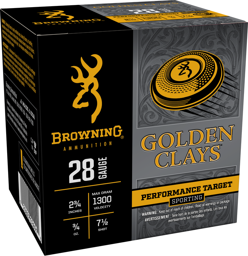 Browning Golden Clays 28 Gauge 2.75" 3/4oz #7.5 Shot 25 Round Box - BGC287