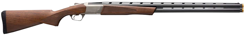 The Browning Cynergy CX is a 20 gauge over/under shotgun with a 3" chamber, 30" ventilated rib barrel, and 2-round capacity. Features a low-profile silver nitride steel receiver, Grade I walnut stock with satin finish, satin blued barrels, and includes three Invector-Plus choke tubes (Full, Modified, Improved Cylinder). The crossover design delivers a 60/40 point of impact for versatility in both field and target shooting, weighing 6.6 lbs with an overall length of 48".