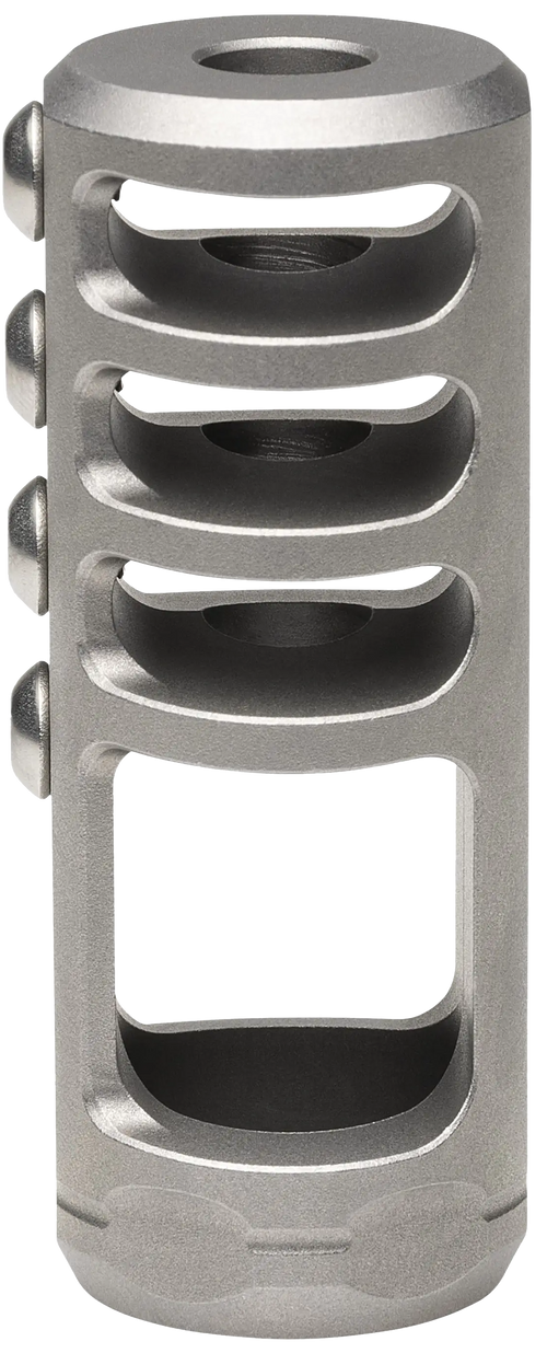 The Browning Xeno Recoil Hawg is a muzzle brake engineered for suppressors using the Dead Air Silencers Xeno mounting system, reducing felt recoil by up to 70% depending on caliber. Constructed from stainless steel with a black matte finish, it features M13x1.25 threads and allows quick mounting of Hub-compatible suppressors with a Xeno adapter (sold separately). The brake redirects gases to the sides for reduced shooter discomfort and fatigue.