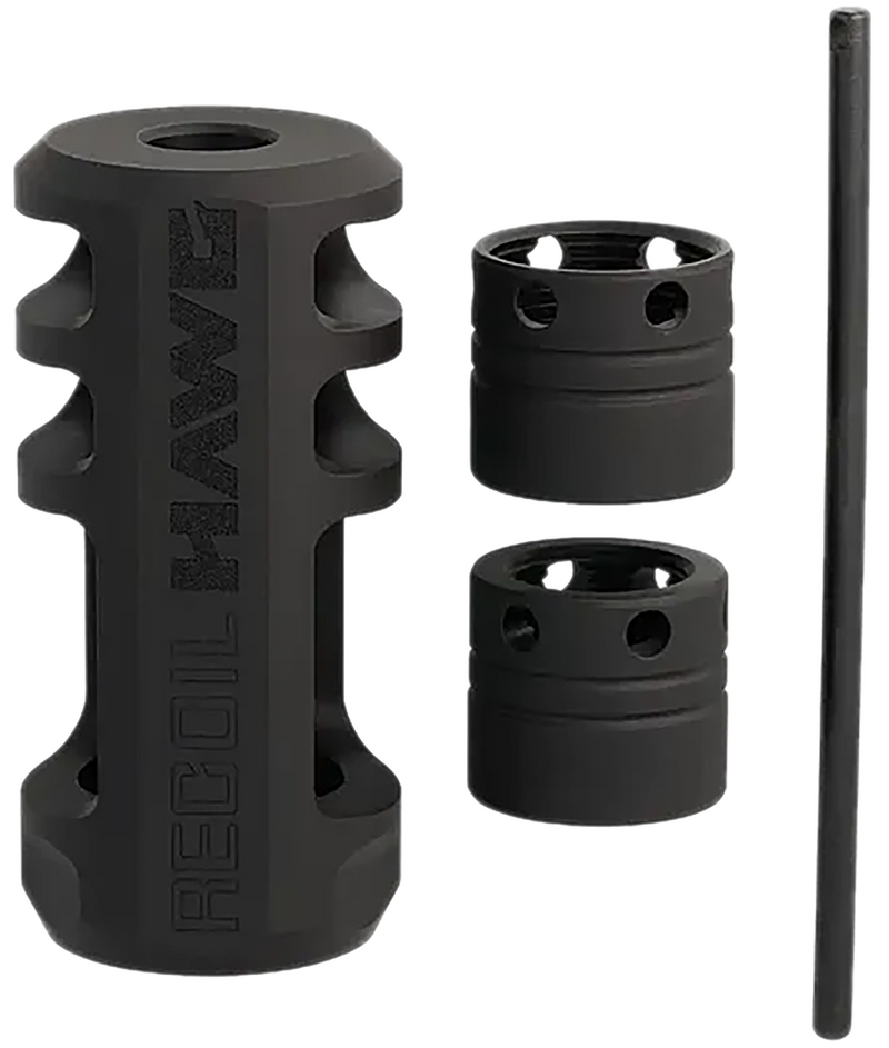 The Browning Xeno Recoil Hawg is a muzzle brake engineered for use with Dead Air Silencers' Xeno mounting system, designed to reduce felt recoil by up to 70% depending on caliber. Constructed from stainless steel with a black matte finish, it features a 5/8x24 thread pitch and 2.20" overall length, allowing quick mounting of Hub-compatible suppressors with a Xeno adaptor (sold separately). The brake directs gases to the sides to minimize recoil and shooter fatigue.