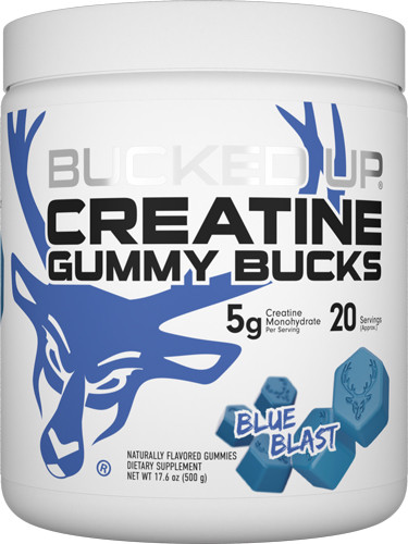 Bucked Up Creatine Gummies in Blue Blast flavor provide 20 servings of creatine supplementation in gummy form. These gummies are designed to support muscle performance and strength training recovery. This is a dietary supplement product, not a firearm or firearm accessory.