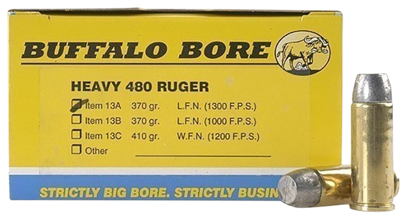 Buffalo Bore Ammunition Heavy Strictly Business 480 Ruger 370gr Lead Flat Nose Handgun Ammo - 13A20