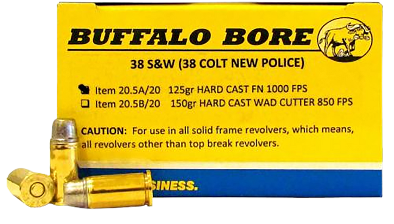 Buffalo Bore Ammunition Personal Defense Strictly Business 38 S&W 125gr Hard Cast Flat Nose Handgun Ammo - 205A20