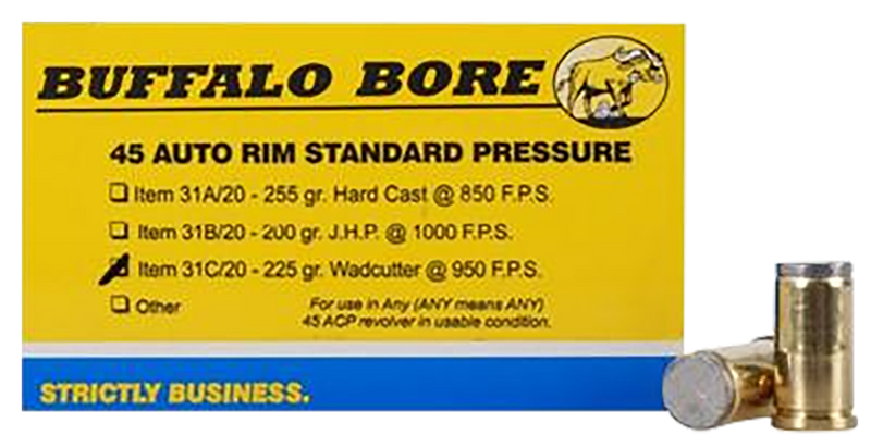 Buffalo Bore Ammunition Standard Pressure Strictly Business 45 Auto Rim 225gr Wadcutter - 31C20