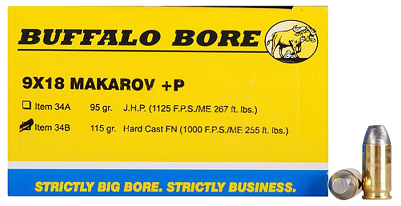 Buffalo Bore Ammunition Personal Defense Strictly Business 9x18 Makarov +P 115gr Hard Cast Flat Nose - 34B20