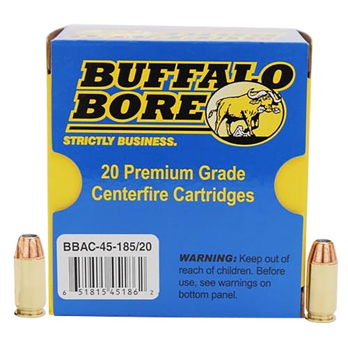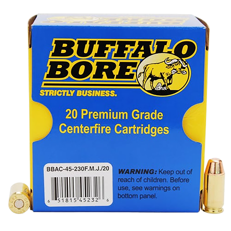 Buffalo Bore Ammunition Personal Defense Strictly Business 45 ACP +P 230gr Full Metal Jacket Flat Nose Handgun Ammo, 20 Per Box - 45230FMJ20