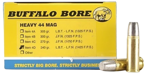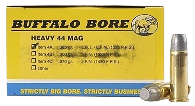 Buffalo Bore Ammunition Heavy Strictly Business 44 Rem Mag 305gr Hard Cast Lead Flat Nose Handgun Ammo, 20rd Box - 4A20
