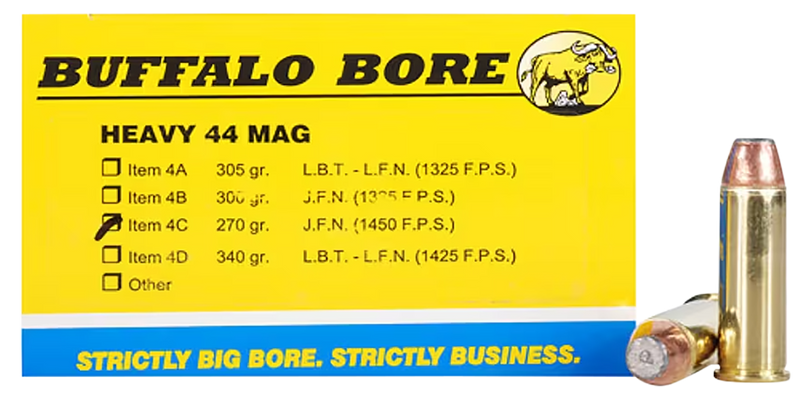 Buffalo Bore Ammunition Heavy Strictly Business 44 Rem Mag 270gr Semi-Jacketed Flat Point Handgun Ammo - 4C20