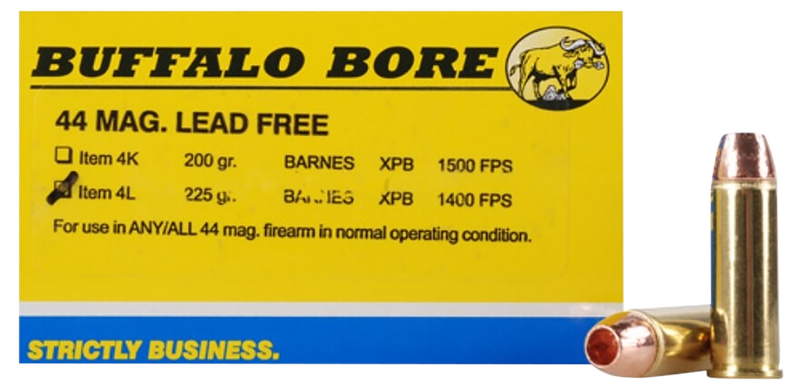 Buffalo Bore Ammunition Buffalo-Barnes Strictly Business 44 Rem Mag 225gr Barnes VOR-TX XPB Lead-Free Handgun Ammo, 20rd Box - 4L20