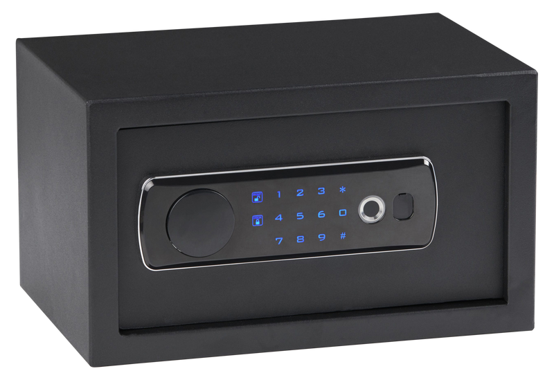 The Bulldog BD5010 Duo is a compact handgun safe featuring multiple entry options including digital keypad, biometric fingerprint scanner, and traditional key access. Constructed from black powder-coated steel with egg crate foam interior, it holds up to one handgun and measures 13.0" L x 9.8" W x 8.0" H with an illuminated LED keypad for low-light access.