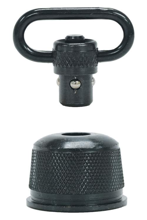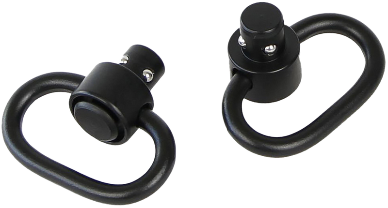The Bulldog BD884 is a deluxe push button swivel constructed from steel with a 1.25" loop size, designed for securing slings and other accessories to firearms. This swivel features a black finish and measures 5.2" in length, providing a secure attachment point for tactical and hunting applications.