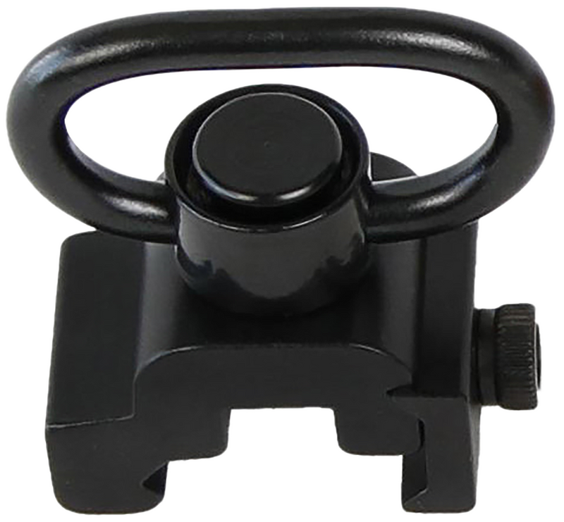 The Bulldog BD886 is a steel QD rail mount swivel with a push-button quick-disconnect mechanism, designed for secure attachment to firearm rail systems. The 1.25" loop accommodates slings and other accessories. This deluxe swivel provides reliable rotation and stability for tactical and hunting applications.