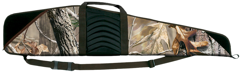 The Bulldog Pinnacle is a 44-inch rifle case constructed from durable water-resistant nylon with Realtree AP camouflage and brown trim. Features 2.25 inches of padding, a full-length zipper, and a floatable design for reliable protection and transport of rifles.