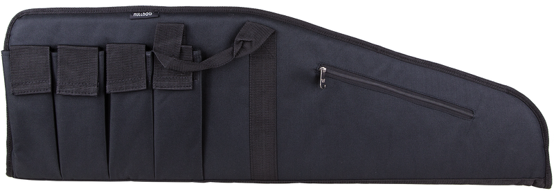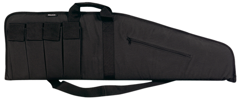 This 35-inch tactical rifle case features 2.25 inches of soft padding and a durable water-resistant nylon outer shell with brushed tricot inner lining to protect rifles and accessories. It includes a full-length zipper, removable adjustable shoulder strap, zippered accessory pocket, and 4 external velcro magazine pouches for convenient storage and transport.