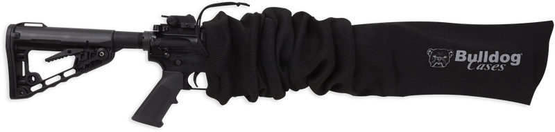 The Bulldog BD158 is a 45" x 6" tactical rifle sock designed for secure firearm storage and transport. Constructed from soft, thick knit fabric that is silicone-treated and moisture-resistant, it protects against dirt, scratches, and rust during long-term storage and range use.