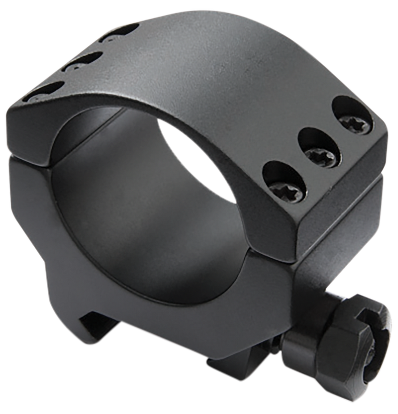 Two-piece aluminum scope rings designed for 1-inch tubes in a low height configuration with matte black finish. These tactical rings feature a wide design with six screws per ring for maximum stability and are compatible with Weaver or Picatinny-style mounts.