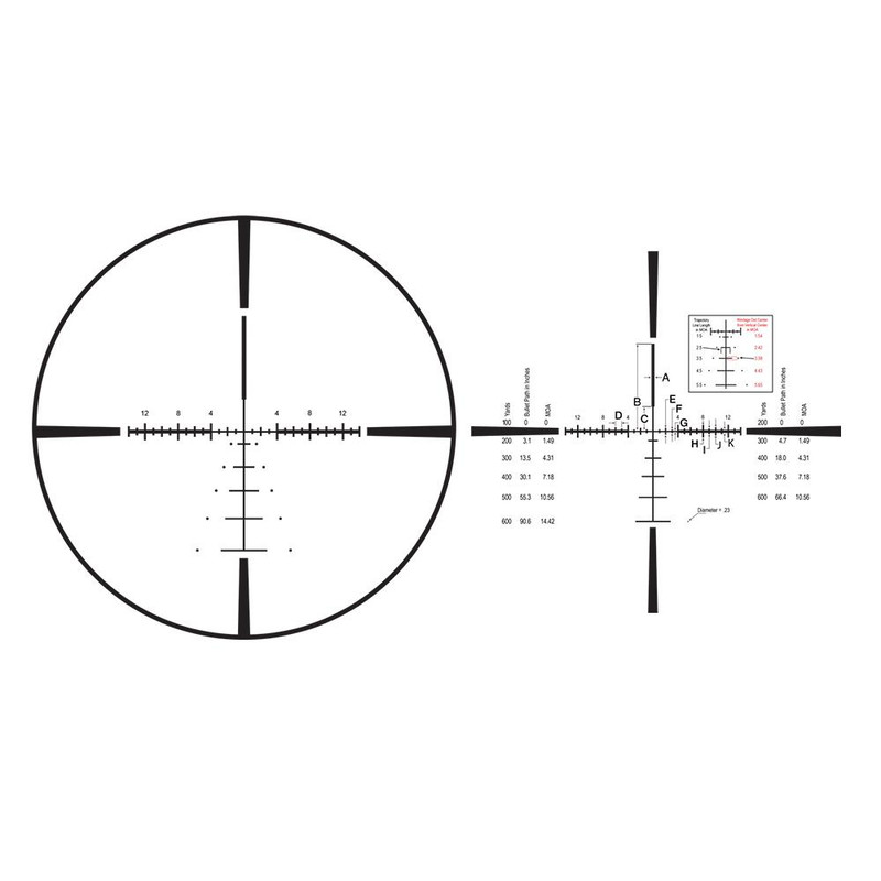 The Burris Veracity is a 5-25x50mm variable power riflescope with a 30mm tube and front focal plane Ballistic E1 reticle for accurate distance computation at any magnification. Features include Zero Click Stop Technology, Modular Adjustment Dial (MAD) turrets, low turret knobs, 1/4 MOA adjustments, and side focus parallax adjustment from 50 yards to infinity. The scope is waterproof and fogproof, weighs 28.2-28.4 oz, and measures 16.4 inches in length.