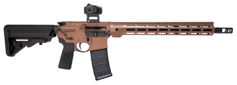 Bushmaster Bravo Zulu semi-automatic rifle chambered in 5.56 NATO with a 16" threaded barrel and 30+1 capacity. Features a 7075 aluminum alloy receiver with salt bath nitride finish, B5 Enhanced SOPMOD stock, two-stage trigger, and DM2S muzzle brake. Weighs 6.90 lbs and includes no sights for optic mounting flexibility.