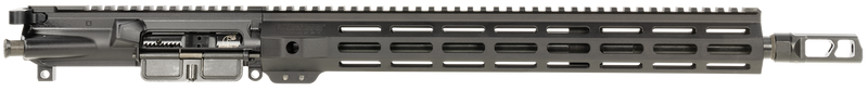 Complete AR-15 upper receiver assembly chambered in 5.56x45mm NATO with a 16" chrome moly vanadium steel barrel featuring black nitride finish. Features a 14" M-LOK free-float handguard, mid-length gas system, Snake Charmer muzzle brake, and optics-ready flat-top aluminum receiver with 1:8" twist rate.