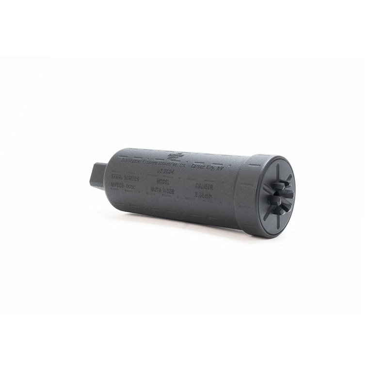The MUTA II is a next-generation suppressor designed for 5.56 NATO and .223 Remington ammunition, featuring reduced sound signature (approximately 14-15.9% reduction depending on measurement position) while maintaining a compact, lightweight profile. Constructed from Inconel for durability, this direct-thread suppressor features a 1/2-28 attachment and is rated for full-auto use. At 6 inches in length and 12.5 ounces, it balances noise reduction with minimal impact to sight picture and handling.
