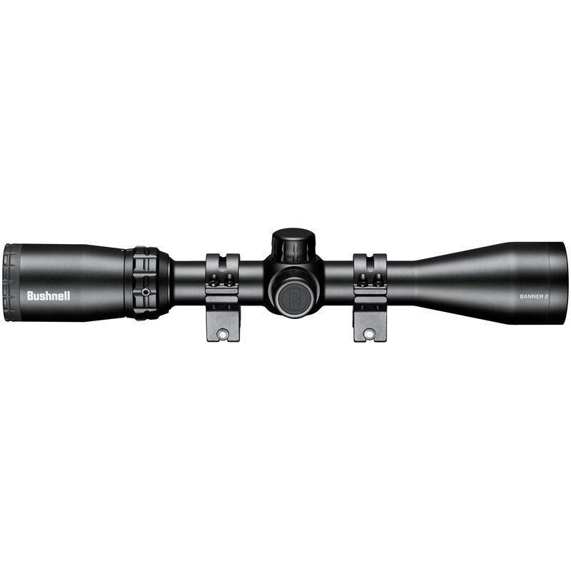 The Bushnell Banner-2 is a 3-9x40 variable power riflescope with a 1-inch tube and second focal plane (SFP) design. It features an illuminated DOA Quick Ballistic reticle with drop points calibrated to 500 yards, fully multi-coated optics for excellent low-light performance, and is waterproof to IPX-7 standards. Weighing 14.8 oz with a 12.3-inch length, it includes rings and offers 60 MOA elevation and 50 MOA windage adjustment with 1/4 MOA incremental clicks.