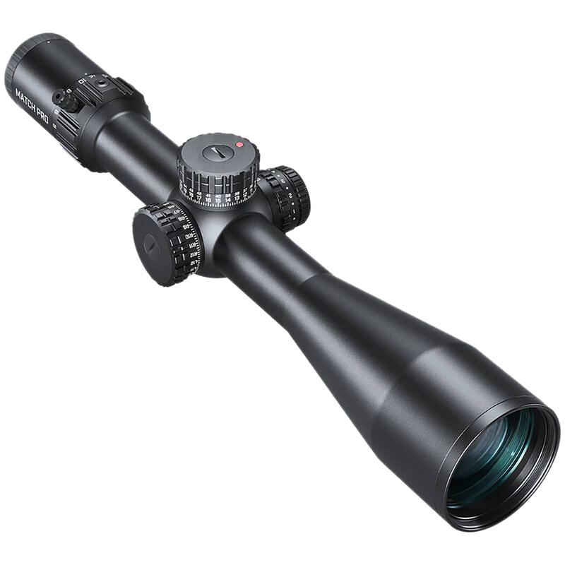 The Bushnell Match Pro ED is a 5-30x56mm riflescope with a 34mm tube and illuminated DM2 reticle designed for precision shooting. Features include a side focus parallax adjustment, 3.80" eye relief, and first focal plane reticle with 1/4 MOA adjustments. The scope is waterproof, weighs 32 oz, and includes easy set zero stop and exposed windage/elevation controls.